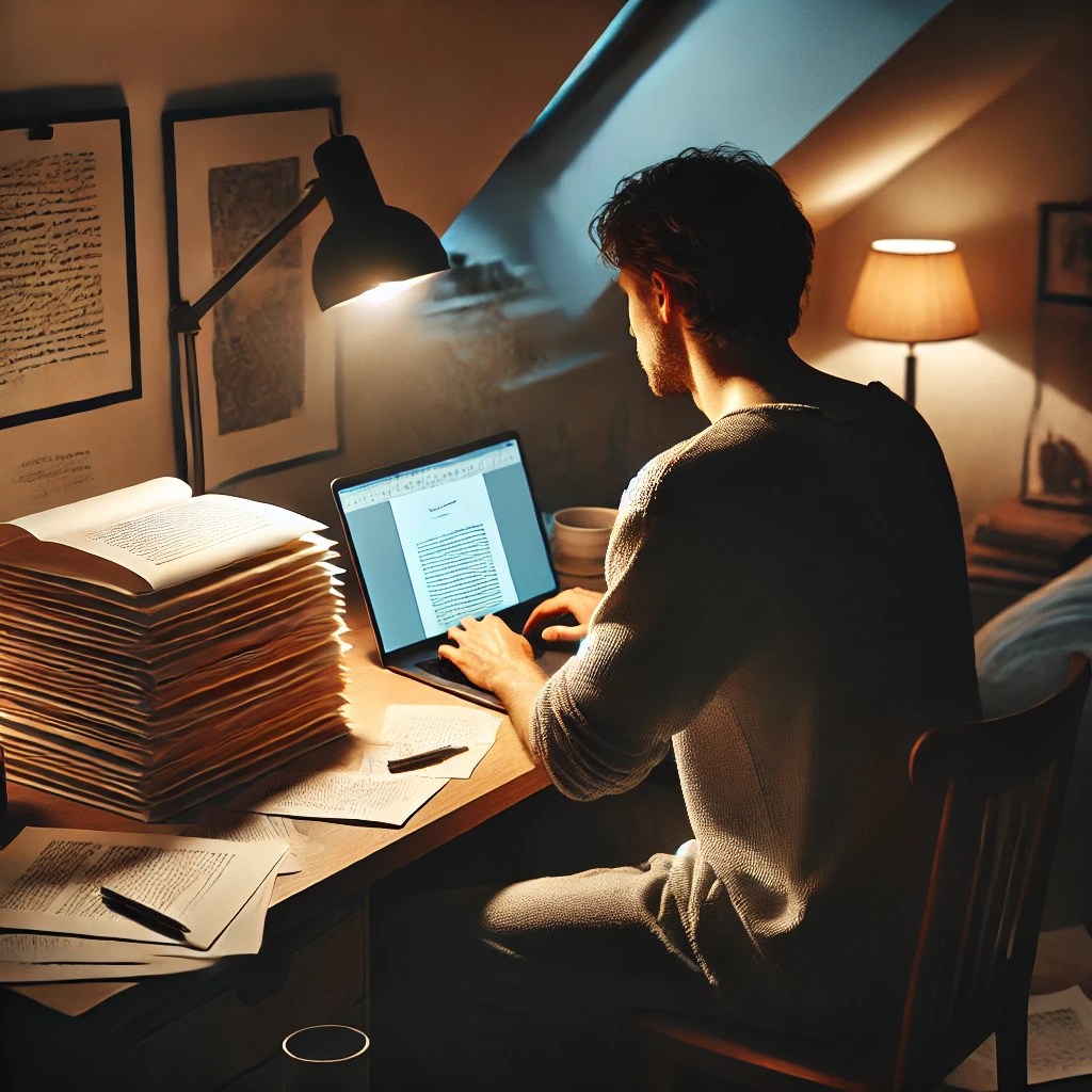 Paul s’assit à son bureau, la lumière tamisée de la lampe jetant des ombres douces sur les pages éparpillées devant lui. Le silence de la pièce semblait le soutenir, comme un compagnon discret dans cette aventure solitaire. Le manuscrit qu’il avait entamé quelques semaines plus tôt avait pris forme, lentement mais sûrement. Il n’était pas encore là où il le voulait, mais il y avait du progrès. Les premiers doutes s’étaient dissipés, remplacés par une confiance fragile, comme celle d’un artisan qui maîtrise peu à peu son art. Il relut la dernière phrase écrite. Cela allait. Avec une légère grimace, il craqua ses doigts et se replongea dans l’écriture, une tâche qu’il accomplissait désormais comme un rituel, plus par besoin que par désir.