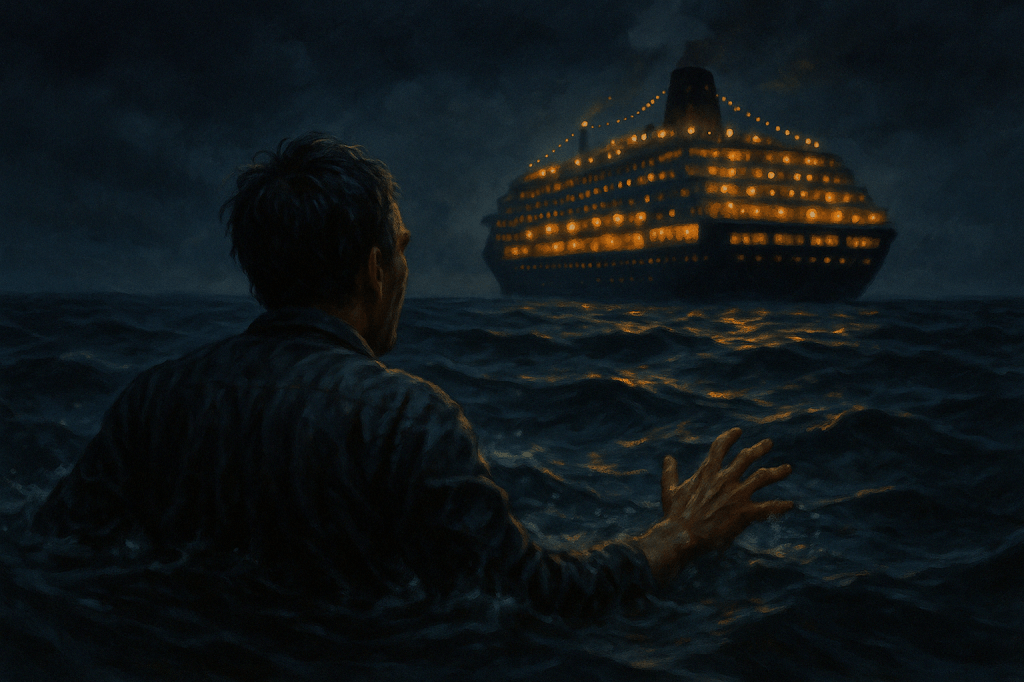 La musique électrisait l’air nocturne, se mêlant aux rires et aux tintements de verres. Sur le pont supérieur du paquebot, des dizaines de passagers enivrés profitaient de la nuit tropicale, insouciants et éclaboussés par la lumière dorée des guirlandes suspendues. Ethan vacilla légèrement, s’éloignant de la foule. Trop de bruit. Trop de monde. Trop d’alcool. Il avait cessé de compter les verres après le troisième whisky. Ce voyage devait être une échappatoire, mais tout ce qu’il trouvait, c’était cette nausée lancinante et ce vertige persistant. Il longea le bastingage, la coupe à la main, et s’y adossa en inspirant profondément l’air salé. L’océan était là, vaste, silencieux, libre. Une partie de lui enviait cette tranquillité. Il porta son verre à ses lèvres, mais son regard s’accrocha à son reflet déformé dans le liquide ambré. Un rire s’échappa de sa gorge. Il détestait ce qu’il voyait. Derrière lui, une voix l’interpella :