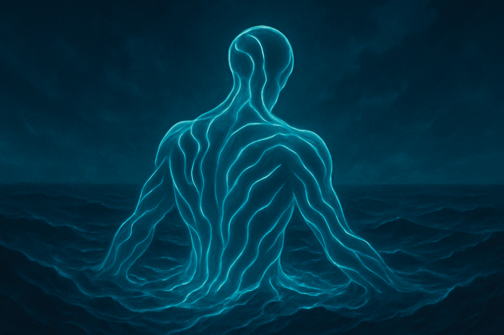 📁 Structure : Le point de départ de cette nouvelle remonte à plusieurs années : l’image d’un homme chutant d’un paquebot en pleine nuit. Longtemps, je n’avais aucune idée de la suite à donner à cette scène. Plusieurs pistes ont émergé avec le temps, et j’ai finalement choisi celle d’un retour à la mer, mêlant une critique de l’humanité et de sa prétendue supériorité à une forme de réintégration dans un peuple marin ancien, quasi mythologique. L’idée d’un corps devenu translucide, parcouru de pulsations lumineuses à chaque battement de cœur, est née au fil de l’écriture avec l’IA – une de ses propositions particulièrement inspirées.