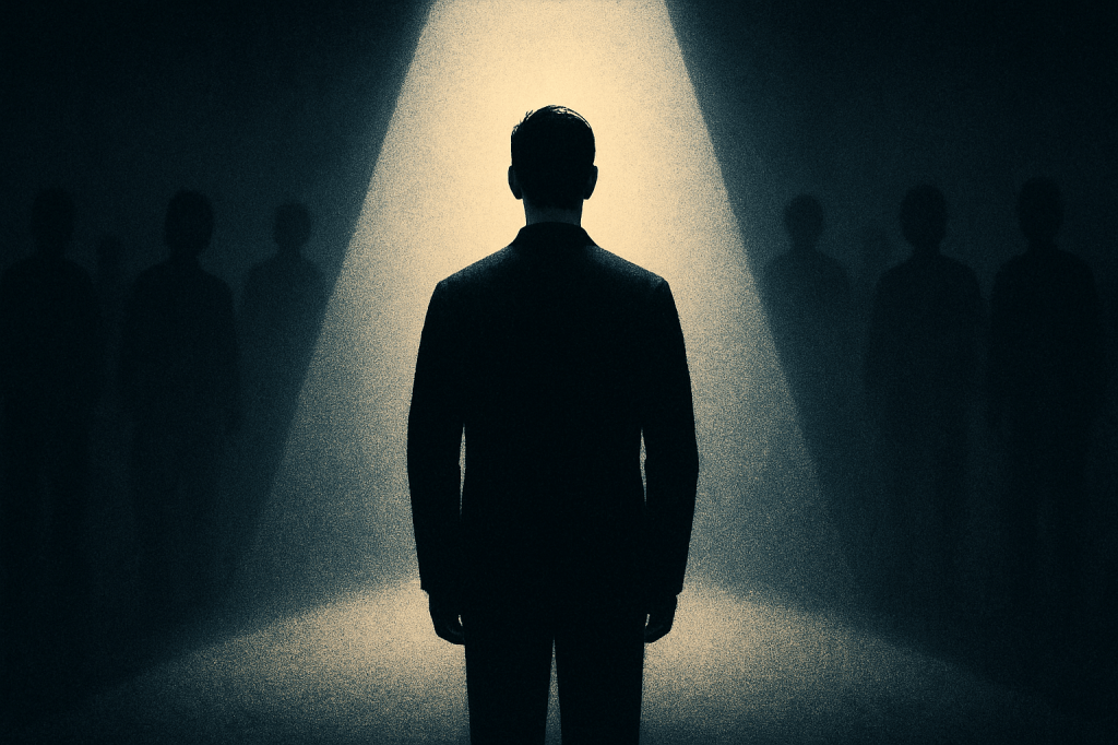 Et là, pour clore ce passage, surgit une idée dérangeante : un contre-modèle du biais du protagonisme. Si le biais du protagonisme est cette illusion douce qui nous fait croire que tout gravite autour de nous, que notre vie suit un arc narratif, avec obstacles, climax et révélations… alors son revers serait peut-être cela : se sentir PNJ de sa propre vie. Je me regarde agir sans désir clair. Répéter sans y croire. Répondre sans penser. Pas de quête. Pas de narration. Juste une boucle. Ce modèle serait celui où l’on ne se vit plus comme un héros, mais comme le second rôle dans les histoires des autres. L’agent de liaison. L’ombre utile. Et cette sensation, quand elle s’installe, peut devenir étrange : on ne doute pas d’être observé, comme dans le syndrome de Truman — on doute d’être perçu. Peut-être est-ce là une autre forme de vertige. Moins spectaculaire. Plus discret. Mais tout aussi troublant. Personnellement, je trouve cette perspective plutôt confortable… n’étant plus la cible du projecteur, on cesse d’être attendu : plus de pression à réussir ou à briller. On devient une existence basse intensité. C’est une forme de retrait existentiel sans crise. Une abdication douce du rôle principal. Et dans un monde saturé d’ego narratifs, ce retrait peut presque ressembler à une paix.