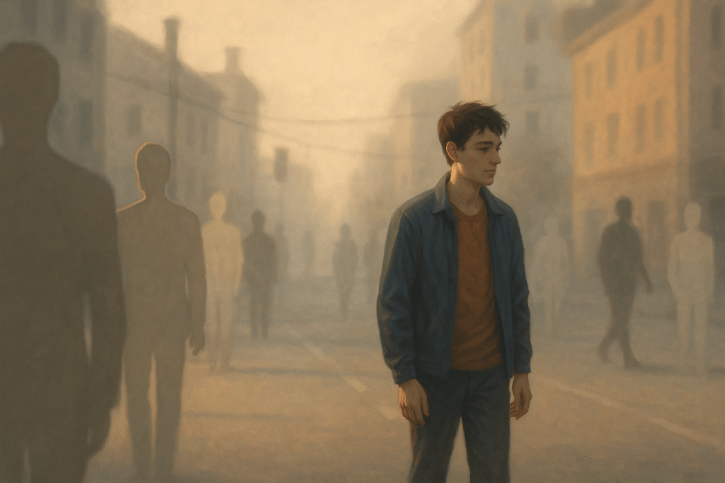 Cette notion de « PNJ » (personnage non-joueur) est essentielle dans l’univers vidéoludique : elle structure le décor humain, donne vie aux interactions, et crée, paradoxalement, une forme de réalisme social à la crédibilité relative — bien que tout gravite autour du joueur. Dans la vie réelle, ce sentiment de « figuration généralisée« , je le ressens parfois aussi. Je crois qu’il naît avant tout d’un état de « désattention » chronique, provoqué par un trop-plein sensoriel, émotionnel… ou simplement existentiel. Quand l’environnement déborde, le cerveau filtre — et les autres deviennent flous, périphériques.